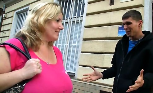 Obese light-haired with xxl melons takes sudden rods