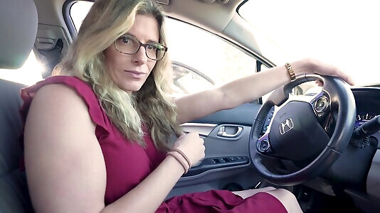 Blonde Cory Chase enjoys while giving a nice handjob in the car