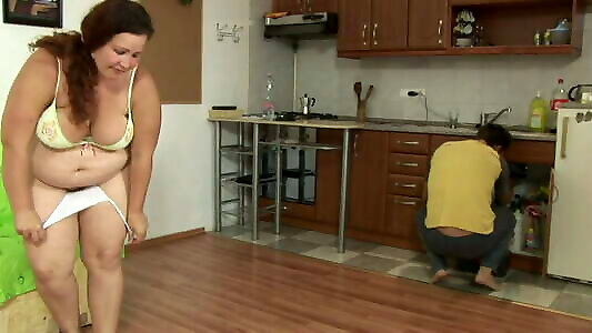 Highly immense black-haired Bbw female boinking in the kitchen