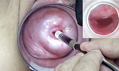 un endoscopio fotocamera asiatica è immerso nella cervice per guardare all'interno dell'utero