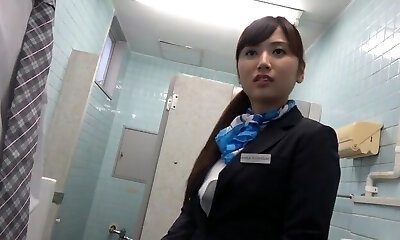 Flight attendant gives bathroom blowjob in uniform