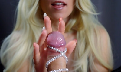 Pearl-Adorned Dick in Blonde’s Hands