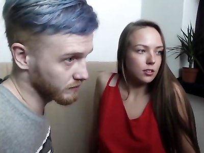 Amateur young splendid couple posing on cam